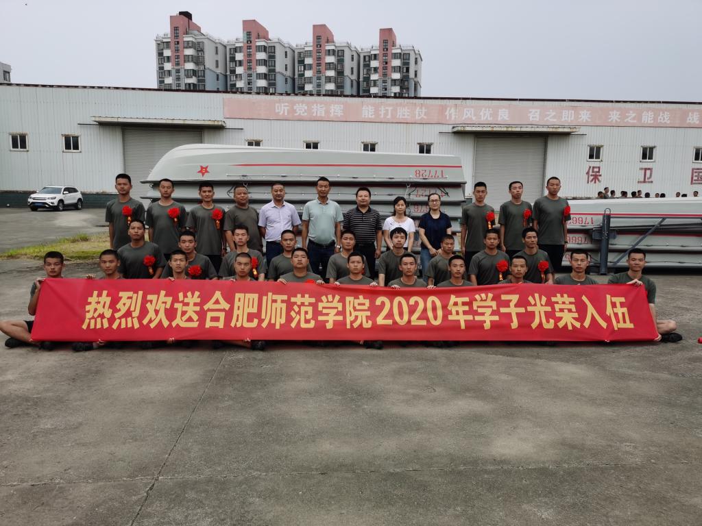 本网讯 2020年全国大学生征兵工作已圆满结束,我院今年参军入伍的大学生新兵即将奔赴军营开始真正的军旅生涯。为了让他们安心服役、认真学习,近日,学院武装部部长、保卫处处长周荣、生命科学学院党委书记郭桃芬一行5人代表学校前往合肥警备区教导队看望慰问在那里开展服役前训练的我院2020年度入伍新兵。