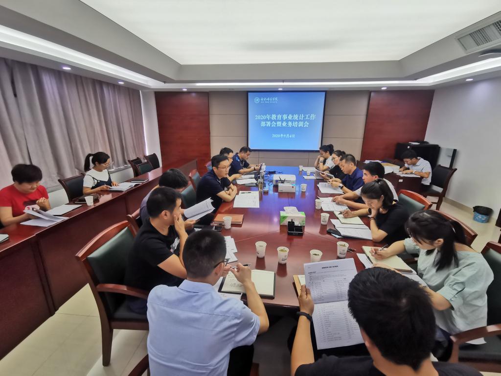 本网讯 为进一步增强统计人员综合能力,确保学校2020年教育事业统计工作按时、规范、有序推进,根据上级要求及学院工作安排,9月4日上午,学院在行知楼第一会议室召开2020年教育事业统计工作部署会暨业务培训会,发展规划处、教务处、学生处等19个单位的统计人员参加会议。