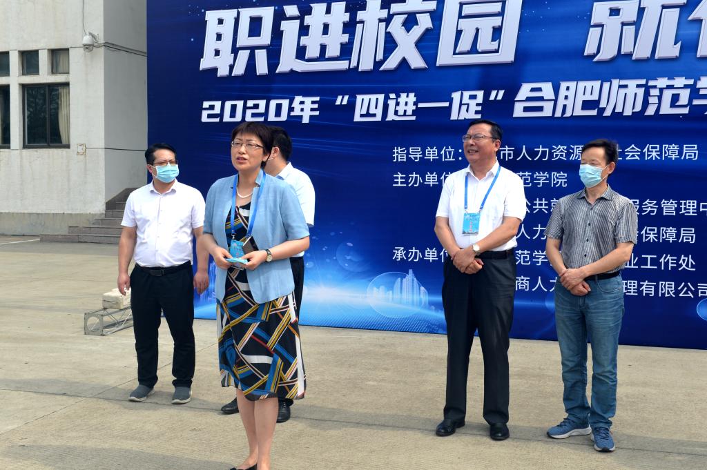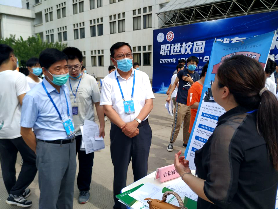 本网讯 为认真贯彻落实党中央国务院、省委省政府稳就业决策部署和省委教育工委省教育厅统筹办好线上线下招聘活动相关要求,6月12日上午,由我院和合肥市人社局、合肥市公共就业人才服务管理中心、包河区人社局联合举办的主题为“职进校园 就有未来”线下专场对接会在锦绣校区博约楼南广场成功举行。合肥市人社局工会主席范家生,合肥市人社局就业促进处副处长程名民,合肥市公共就业人才服务管理中心副主任李方成,包河区人社局副局长吴邦国,包河区人社局就业促进科科长刘祥,学院党委书记徐成钢,党委副书记、院长方东玲,党委副书记吴昕春,党委委员、副院长姚本先等出席招聘活动启动仪式并在现场指导,相关职能部门、各二级学院党政负责同志、毕业班辅导员和返校未就业毕业生等参加了启动仪式和招聘活动。