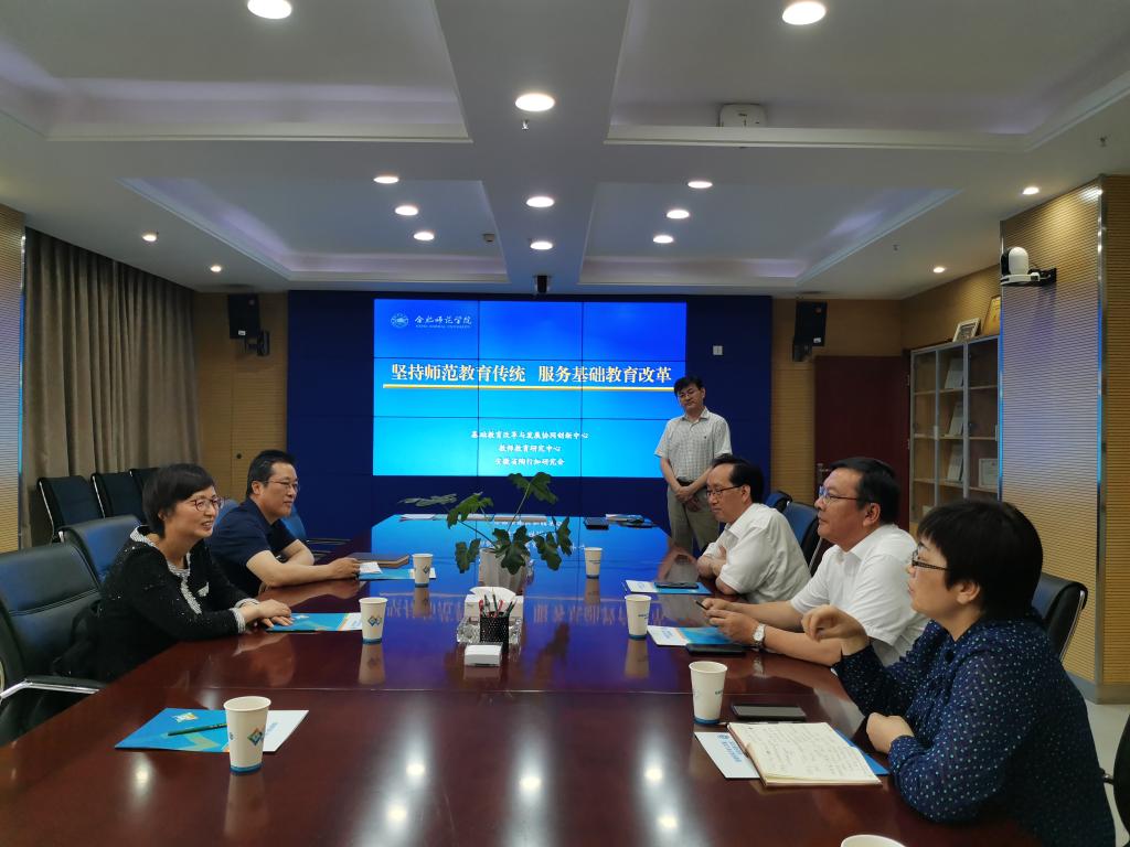 本网讯 6月10日,中共安徽省委教育工委委员、安徽省教育厅副厅长徐静平和师资处处长朱玉华一行前来beat365基础教育改革与发展协同创新中心调研,学院党委书记徐成钢,党委副书记、院长方东玲,副院长姚本先及相关职能部门负责人陪同调研。