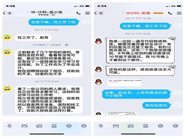 开展就业状态分析,明确学生主观需求。为有效调动毕业生求职的积极性和主动性,减少就业过程中的阻力和压力,学院毕业班辅导员宗彪在3月初通过电话、QQ、微信等途径与118名毕业生进行全覆盖沟通,准确掌握毕业生当前的就业状态及主观需求,做好工作台账,便于后期跟踪和针对性指导。