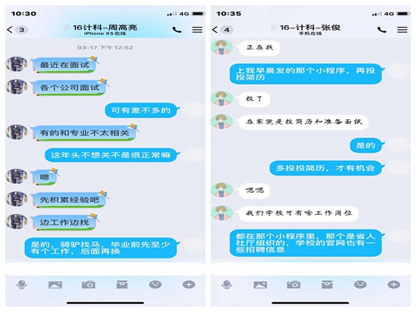 定期了解求职状况,因人而异细化服务。为进一步缓解毕业生在网络招聘过程中存在的困惑,有效解决毕业生求职中的困难,学院针对正在求职的毕业生实行“一周询问、随时帮扶”制度,根据毕业生实际情况和个人特点有针对性的指导毕业生求职,切实做到以学生为中心、以需求为导向、以就业为目标。
