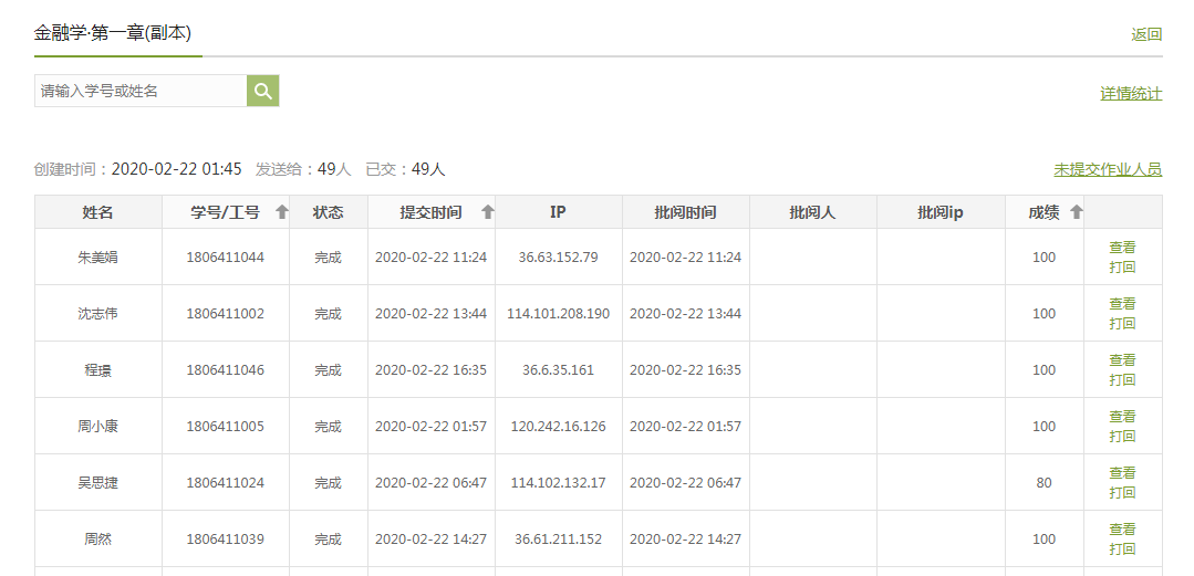 学生作业得分情况