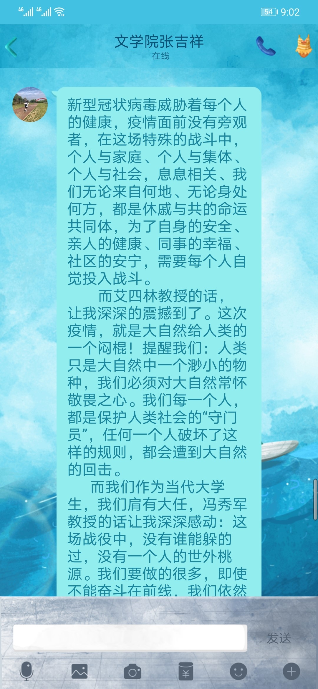 本次“思政大课”在beat365师生中产生了强烈反响,大家在学习后,纷纷通过学习平台的课程群聊、QQ、微信、微博等途径,谈认识、谈体会、谈作为,形成“人人参学、人人争讲”的热烈反响局面。