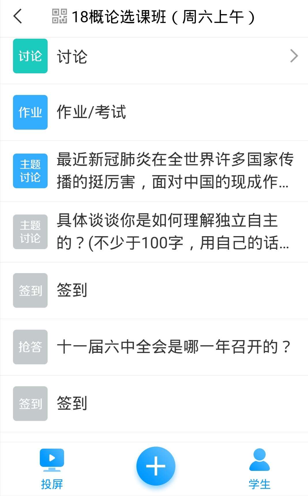 师生联动、努力对接,确保学生一个不掉队。老师们一边忙于在线课程建设,一边又要积极对接班级、联系学生,让他们全部加入到《概论》课程中来,尽早接受培训、熟悉学习流程。在短暂的时间内,让全校30多个班级、1400多名学生,一个不落加入课堂,确实不是件容易的事情!老师们除了通过系统将学生名单及时导入,还通过辅导员或其他渠道,与自己所带班级学生建立微信和QQ联系,确保快速对接到每一位学生。除了在“学习通”平台与学生保持密切联系外,老师们还建立了包括班级全体同学的QQ群,及时上传课程资料,辅助线上教学和班级管理,学生随时能与老师直接沟通。师生间及时对话、沟通和交流,有效避免了信息失真和任务消解。开课以来,教研室老师所带学生中除了极个别原因(如参军等),其他均参与了课程学习。