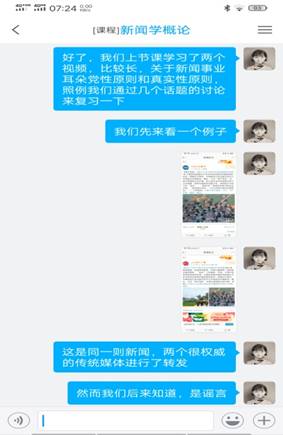 二是结合教学知识点和疫情精心准备每节课的讨论话题。每节课给学生安排一节课的教学视频观看任务,留下一节课的时间带领学生进行教学重难点的深度讲解和答疑。通过精心设计与疫情相关的讨论话题,让学生在学习教学视频后真正理解、掌握教学重难点。在《新闻学概论》课程中,当学生学习了“真实性原则”教学视频后,选择疫情中出现的虚假新闻作为案例,请学生探讨新闻虚假的类别、虚假的原因及改进的措施,进而与学生讨论新闻中事实与真相的关系、学生对“真实有限性”的认知等。在《广告学概论》课程中,当学生学习了“广告与经济的关系”教学视频后,与学生深入探讨了疫情对广告的影响等话题。我认为在网络教学中,设计话题讨论非常重要,话题需要学生愿意谈、有话谈,通过讨论,学生能够回忆起相应的教学知识点,以达到加深学习记忆的效果。