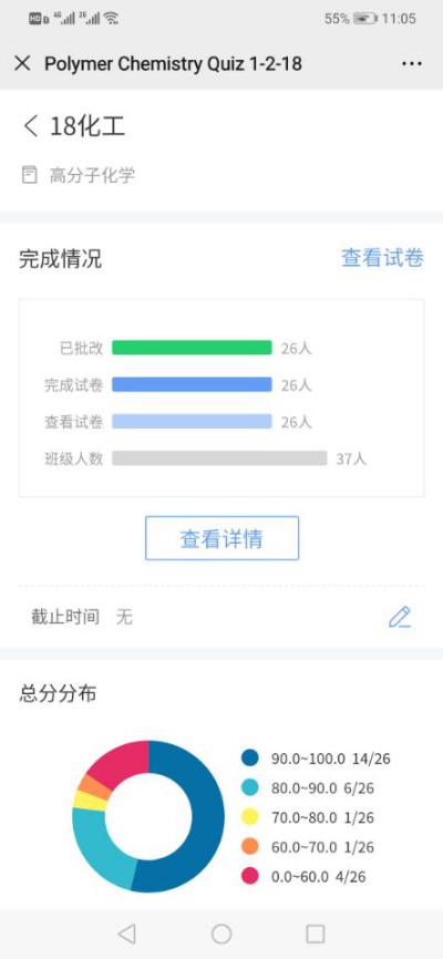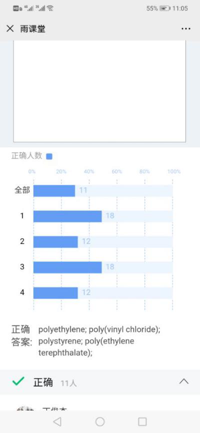一是利用雨课堂帮助学生实现课前的预习。《高分子化学》是化工专业开设的一门双语教学课程。我在课前及时发布课程相关英语专业词汇的讲解和课程相关的视频,让学生对于课程相关词汇有充分的了解,并通过视频学习高分子化学课程中的相关概念和重点内容。