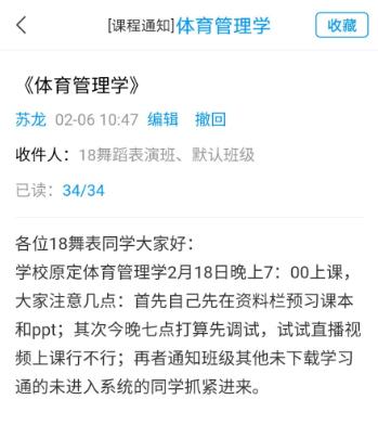 线上直播教学需具备良好的网络条件,当出现上课高峰、网络拥堵时,我会利用腾讯会议平台上课,要求学生打开摄像头,这样充分利用了传统现场教学可以很好地管控学生上课纪律的优势,避免出现直播上课时,老师在上课,学生并不在课堂听课或者干其他与课程无关的事等现象,同时最大程度地还原传统现场教学。提前在“学习通”平台更新任务点,再利用“学习通”以外的平台进行教学并不影响教学效果。多平台线上教学,可以有效地避免了网络拥堵。