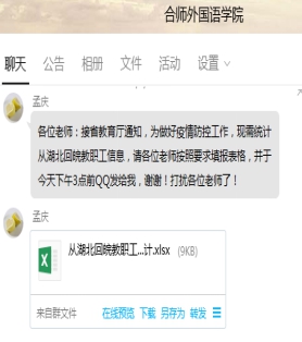 坚持全渠道,启用全部可用的线上平台和载体。疫情发生以来,外国语学院以党支部、教研室、学生自然班等为主体,充分发挥日常学生管理网络平台和教学研交流群作用,迅速启用辅导猫平台、电话短信、QQ群、微信群、学院公众号等多种渠道,确保疫情工作部署传达迅速快捷、准确及时。