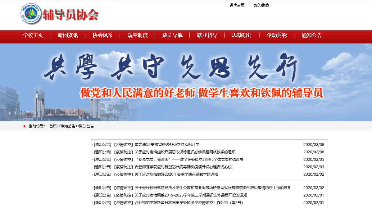 全体辅导员积极提高政治站位,把疫情防控工作作为践行初心使命的磨刀石,亮明思想政治辅导员身份,及时向同学们宣传党中央的政策,尤其是把教育部、省教育厅和学校《致学生的一封信》传达给每一位同学,积极宣传卫生知识,教育引导同学们服从属地管理,做政策的宣传员。同时,还重点与在湖北的同学联系,做好心理辅导,坚定同学们的疫情防控信心。辅导员协会在网站上及时转发学院“疫情防控”公告、通知等,传达阻击疫情的理性声音。