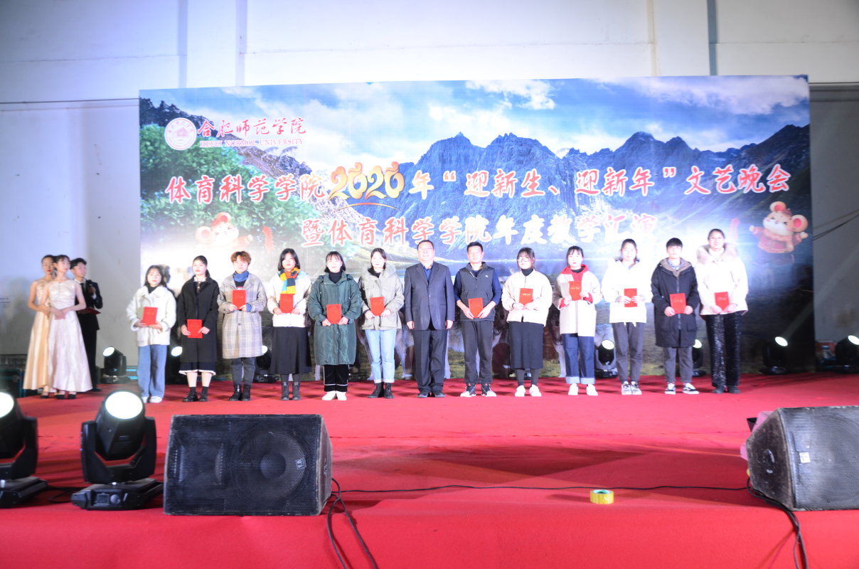 本网讯 12月23日晚,由安徽水上运动管理中心、安徽省田径游泳运动管理中心、安徽省球类运动管理中心、安徽省射击运动管理中心和beat365唯一官方网站体育科学学院联合主办,体育科学学院团委、学生会承办的体育科学学院2020年“迎新生、迎新年”文艺晚会暨年度教学汇演在锦绣校区体育馆隆重举行。党委书记徐成钢,党委副书记吴昕春,党委委员、纪委书记徐文林,安徽水上运动管理中心、安徽省田径游泳运动管理中心、安徽省球类运动管理中心、安徽省射击运动管理中心负责人,学院部分职能部门负责人以及体育科学学院千余名师生欢聚一堂,共享盛宴。