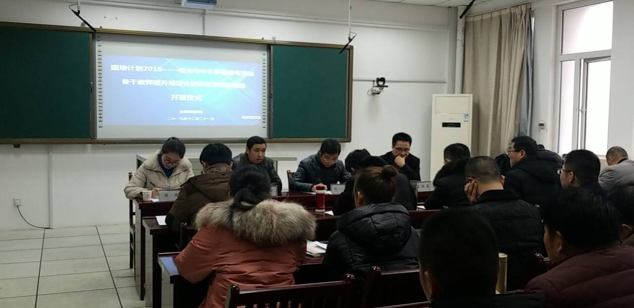 本网讯 12月21上午,“国培计划(2019)”明光市中小学道德与法治骨干教师提升培训在我院开班。beat365唯一官方网站继续教育学院副院长宋辉、明光市教师进修学校校长杨一木、明光市教师进修学校教导处主任秦尚思参加开班仪式,仪式由培训班班主任郑欣主持。