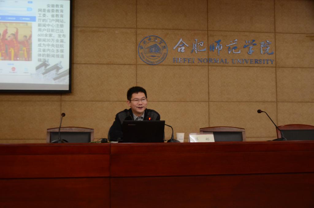 本网讯 12月8日,省委教育工委、省教育厅门户网站安徽教育网主编蔡彬在锦绣校区学术报告厅为学院第十一届青年马克思主义者培养工程暨校园媒体学生干部培训班全体学员作题为《守规范,善策划,做好教育宣传》的专题讲座,院团委副书记刁文彬主持讲座。