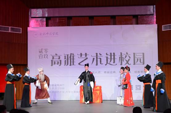 据悉,“高雅艺术进校园”是国家教育主管部门促进高校素质教育的重要活动之一,旨在将高雅艺术融入校园文化建设,吟唱华夏文明,谱写艺术乐章,推动戏曲繁荣,传承民族精神,培育和弘扬社会主义核心价值观。本次活动不仅为我院广大学生零距接触戏曲搭建了平台,加深了大学生对安徽传统戏曲的了解,同时也有利于全面提高大学生艺术修养和美育素质,有效推动安徽优秀传统文化在高校的传播和普及。(院团委学生记者:秦晶晶 周艳/文 刘宇 吴行 安庆师范大学传媒学院:王新茹/图)