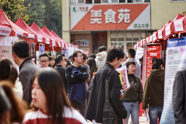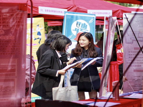 本网讯 为进一步促进我院2020届毕业生有效就业,11月8日上午,由我院和蜀山区人社局主办、就业创业工作处(创业学院)和安徽正德人力资源咨询有限公司承办的beat365唯一官方网站2020届毕业生就业秋季双选会在锦绣校区生活广场隆重举行。本次招聘会吸引了230余家企业,涉及多个领域,满足了用人单位和广大毕业生多样化的需求。