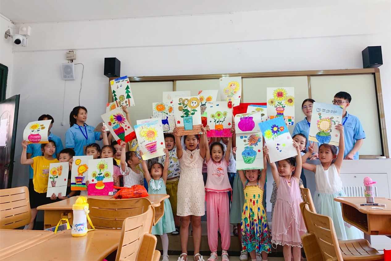 小学员们开心地展示绘画作品