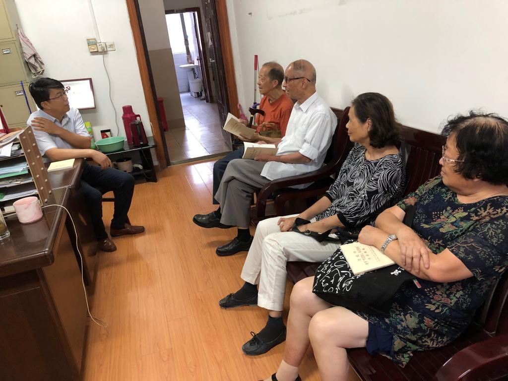把关心关爱老干部老党员与做深学习教育统筹结合,对年老体弱、行动不便的老党员,通过定期走访、就近学习研讨、送学上门等多方式开展学习教育。院领导在国庆前夕走访慰问老党员,传达党的温暖和问候,并带去相关书籍材料。同时,积极推动开展“初心使命无止境——我的主题教育告白”离退休党员学习交流活动。文学院教工党支部与部分退休党员同志开展了一场“不忘初心、牢记使命”主题学习交流活动,生命科学学院把主题教育的学习材料专程送往老党员家中,与老党员一起学,切实营造人人参学、讲学的浓厚氛围。(院主题教育领导小组办公室)