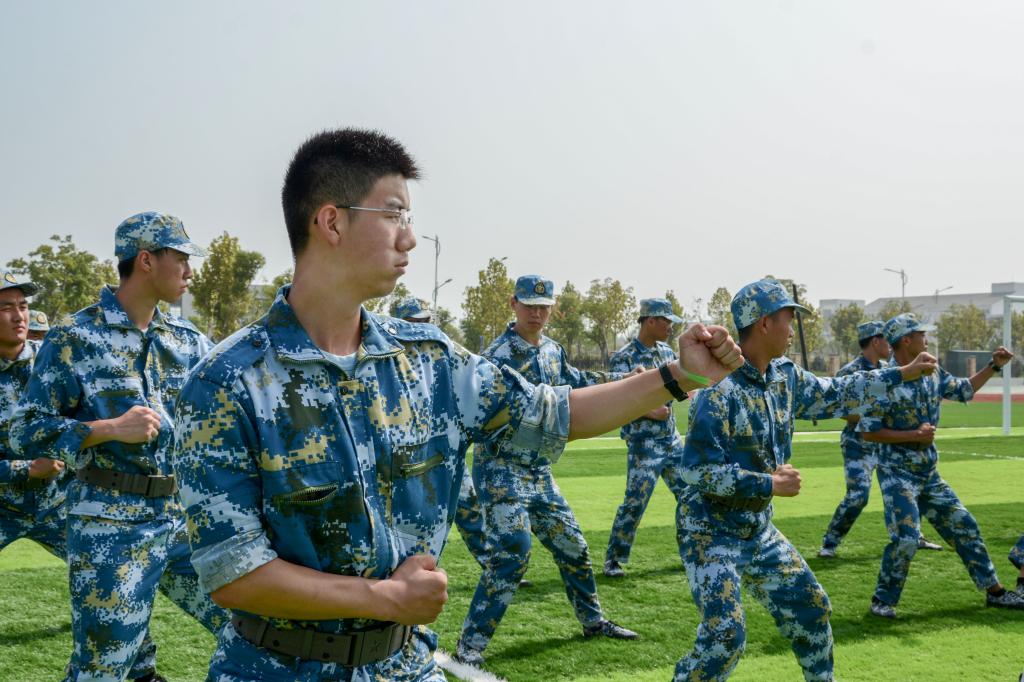 本网讯 九月,骄阳之下,正青春。2019级3600多名新生组成54个连队,分散在滨湖校区的篮球场、操场等场地进行军训。2019级新生军训由学院统一安排,陆军炮兵防空兵学院承训。军训时间从9月9日至22日,为期14天。