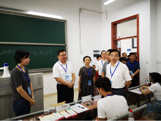 党委书记徐成钢,党委副书记、院长孙道胜,党委副书记、副院长李进华,副书记吴昕春,副院长谢阳群,副院长姚本先,副院长曹卓良带领相关职能部门负责人深入二级学院报到点和绿色通道办理点、卧具发放点、学生宿舍,了解新生报到情况,向家长询问报到办理情况。