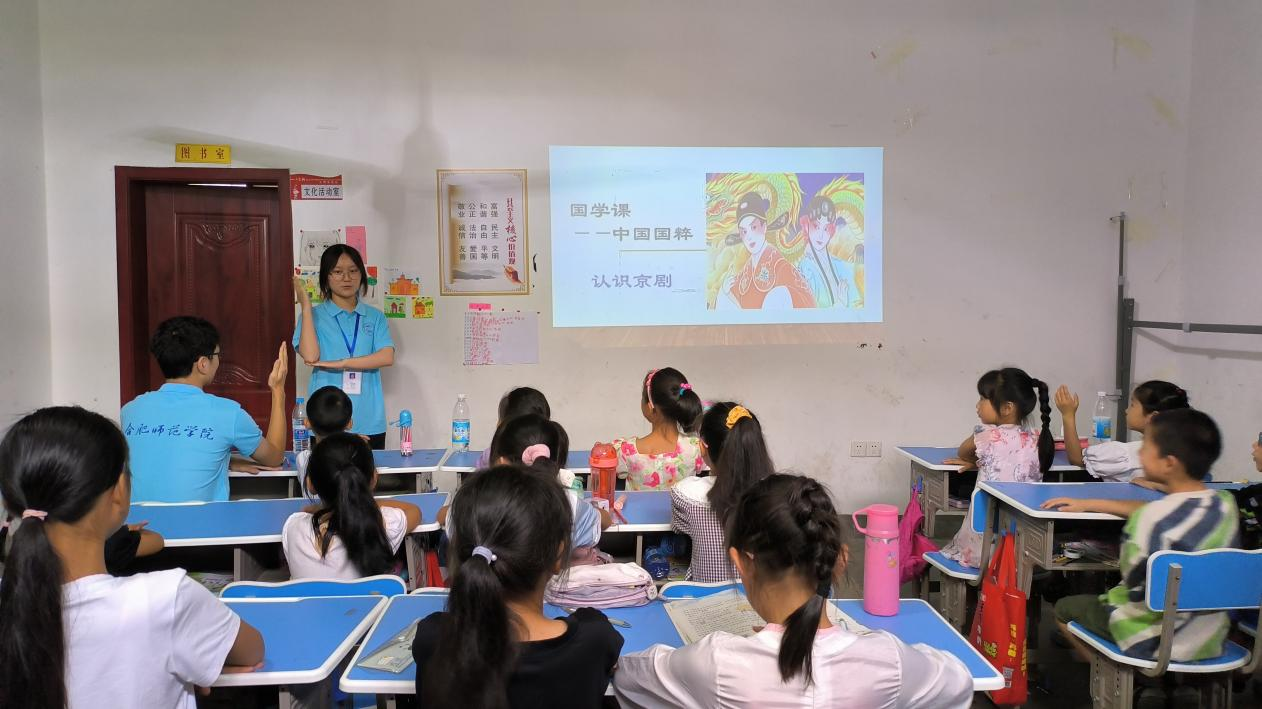课程伊始,“小先生”陈玉丽介绍国粹概念、中国京剧的形成与表现形式。而后以京剧中角色划分为主,向小学员们分别详细地讲授四大行当:生、旦、净、丑的特征与人物形象以及四大行当脸谱的异同。随后,“小先生”对小学员进行提问,他们积极举手回答问题。课程最后,“小先生”播放《说唱脸谱》歌曲视频,让小学员们感受流行音乐与中国京剧文化融合的魅力。