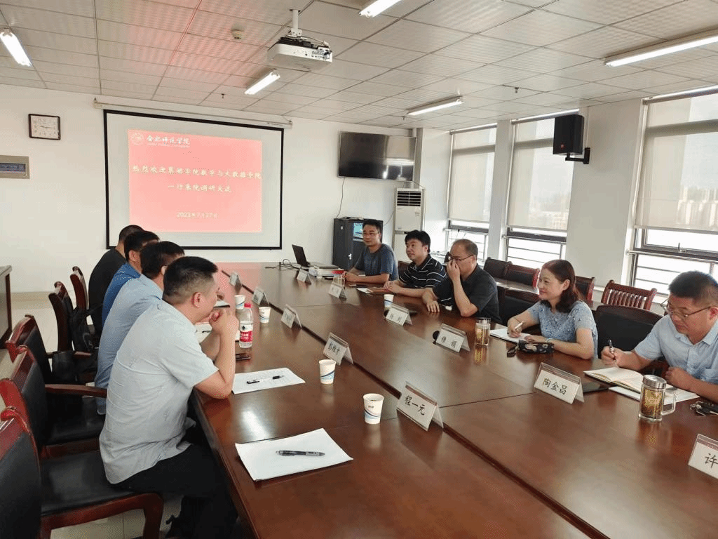 本网讯 7月27日,巢湖学院数学与大数据学院副院长陈佩树、副书记郝江锋、副院长彭维才、应用数学系主任徐富强、数学与应用数学教研室主任程一元一行5人来到我院数学与统计学院开展调研交流。学院党委书记穆娟、副院长杨刘、副书记陶金昌、副院长黄浩、数学系主任许和乾、金融系主任齐继兵出席交流会。