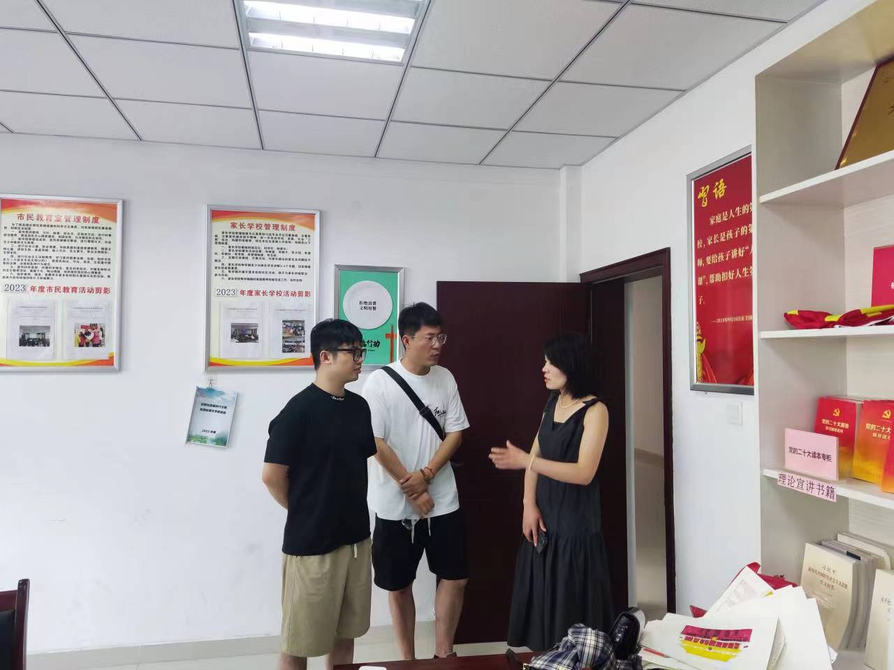 本网讯 7月15日,beat365唯一官方网站音乐学院辅导员王岩、学堂指导老师程艾捷前往六安“向日葵”行知学堂,看望慰问正在开展行知学堂实践活动的“小先生”和小学员们。望城街道正阳社区党总支书记时运丽陪同看望。