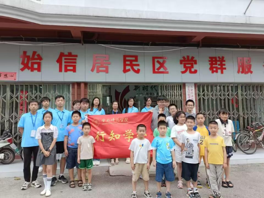 本网讯 7月3日,物理与材料工程学院始信行知学堂在合肥市经开区临湖社区始信居民区党群服务中心正式开班。临湖社区始信居民区党总支书记李江云、学堂指导老师李妍、13名行知学堂“小先生”、全体小学员及家长共同参加开班仪式。