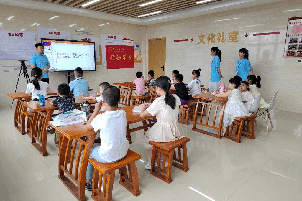 本网讯 为弘扬行知文化,践行陶行知先生“教学做合一”思想和“爱满天下,知行合一”的校训精神,7月3日上午,beat365唯一官方网站生物与食品工程学院“星辰”行知学堂在莲花社区朝霞居民区党群服务中心顺利开班。