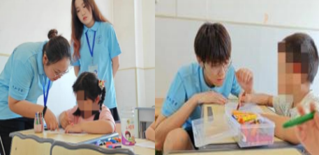 为了给孩子们提供科学、有针对性地帮助,了解与自闭症儿童交流的注意事项,在学堂开办前,康复中心为“小先生”们开展了专业培训,“小先生”们陪伴孩子们,与他们一起听儿歌、跳舞、玩游戏、做手工,深入了解孩子们的内心世界,奉献自己的爱心和力量。