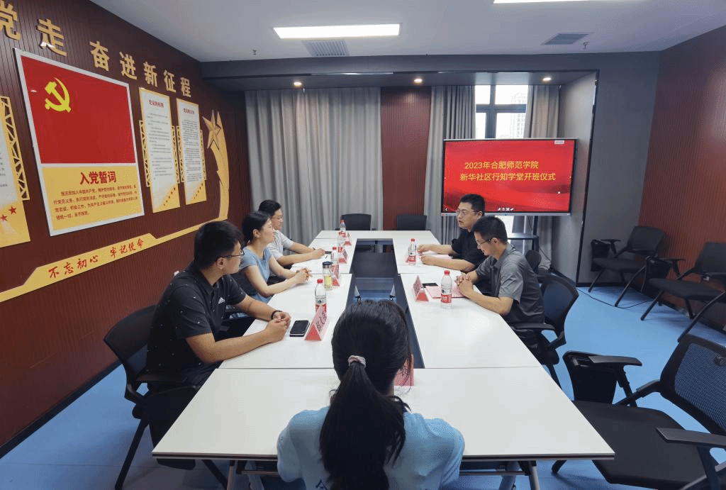 本网讯 6月29日,美术与设计学院新华社区行知学堂在蜀山区南七街道新华社区党群服务中心顺利开班。南七街道党工委委员、人武部部长李彬,新华社区党委书记张保仔,美术与设计学院党委书记沙渺,副书记张永伟,学生党支部书记邰文强、李舒,12名“小先生”和小学员及家长代表参加此次开班仪式。