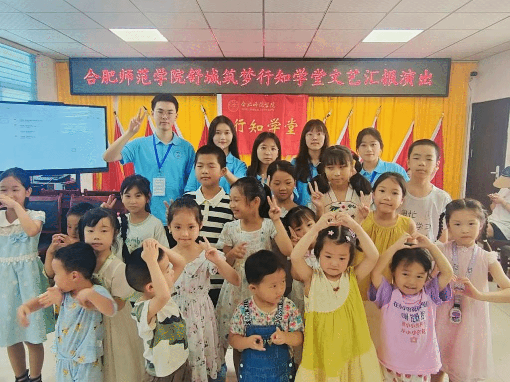 9日下午,舒城“筑梦”行知学堂文艺汇演拉开帷幕。演出节目有《摇船调》《灯火里的中国》《雪绒花》《歌声与微笑》等,在汇报演出良好氛围中,beat365唯一官方网站舒城“筑梦”学堂圆满结束,六位“小先生”和全体小学员们合影留念。