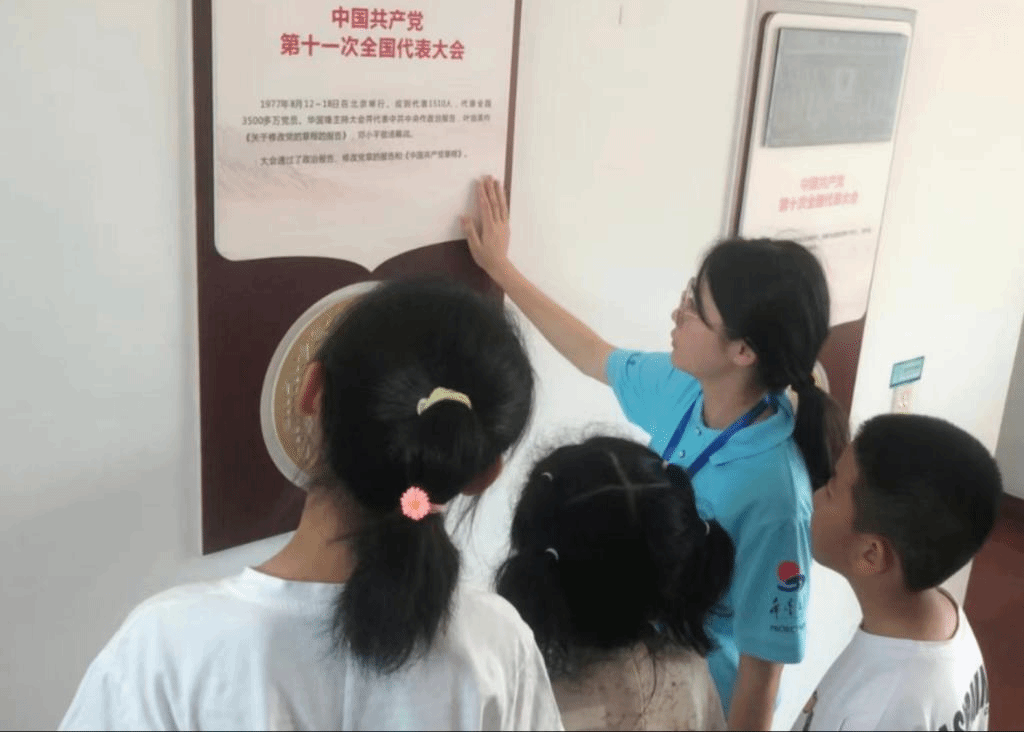 课后,“卓尔行知学堂”的“小先生”们带领学员前往郎溪县党史抗战史纪念墙,并肃立默哀。随后,“小先生”们结合抗战内容向小学员们讲述党史故事,重温历史,从历史汲取前进动力。