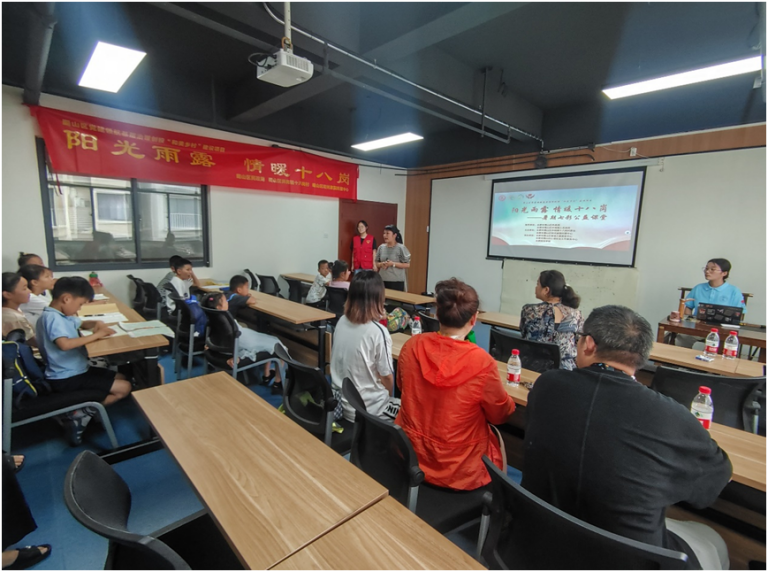 本网讯 7月3日,数学与统计学院与合肥市井岗镇十八岗村联合举办的井岗行知学堂顺利开班,井岗村委委员孔云、行知学堂“小先生”、小学员及学员家长参加开班仪式。