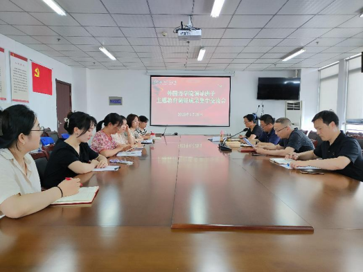 本网讯 6月28日,外国语学院召开学习贯彻习近平新时代中国特色社会主义思想主题教育调研成果集中交流会,学院党委委员、党支部书记参加会议。会议由党委书记马四民主持。