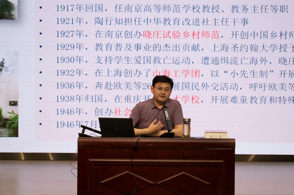 本次培训会共分为三讲,分别由教务处处长钱立青教授、物理与材料工程学院唐洁副教授和团委社会实践部负责人钟树旺老师进行授课。在第一讲中,钱立青以“何为小先生 小先生何为”为题,向大家深入阐述陶行知先生的生活教育思想,并向各位小先生负责人介绍了“小先生制”的由来,他鼓励各位“行知学堂”小先生要在社会实践中秉持“千教万教教人求真,千学万学学做真人”的宗旨,用心用情做好课堂教学;在第二讲中,唐洁以“怎样上好一堂课”为题,结合实际教学案例,从明确教学目的、调动学生学习的积极性、根据实际情况调整教学计划、组织好教学活动以及布置好课外作业等层面具体传达了教学过程中的技巧。在第三讲中,钟树旺以“行知路上共奋进”为题,结合《行知学堂建设标准》和《行知学堂指导规范》,从组织发动阶段、实施运行阶段、总结考核阶段详细讲解了各个环节的注意事项,并着重强调安全意识的重要性,引导小先生和小学员加强安全防护意识。