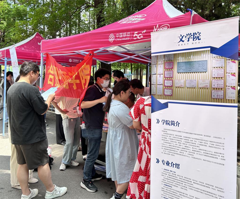 零距离现场服务“行”。根据学院安排,文学院开展招生宣讲现场行,组织骨干队伍于阜阳、亳州等地开展现场招生宣讲会和咨询指导。在阜阳五中、涡阳育萃中学,举办招生宣讲会,简要介绍校情校史、专业分类以及相关招生政策,发放学院宣传手册。在咨询现场,与考生及家长面对面交流,结合学院拟招生计划、往年报考政策等,就考生较为关注的志愿填报等问题进行细致讲解,为考生填报志愿提出合理建议,极大地激发了学生、家长的咨询热情。