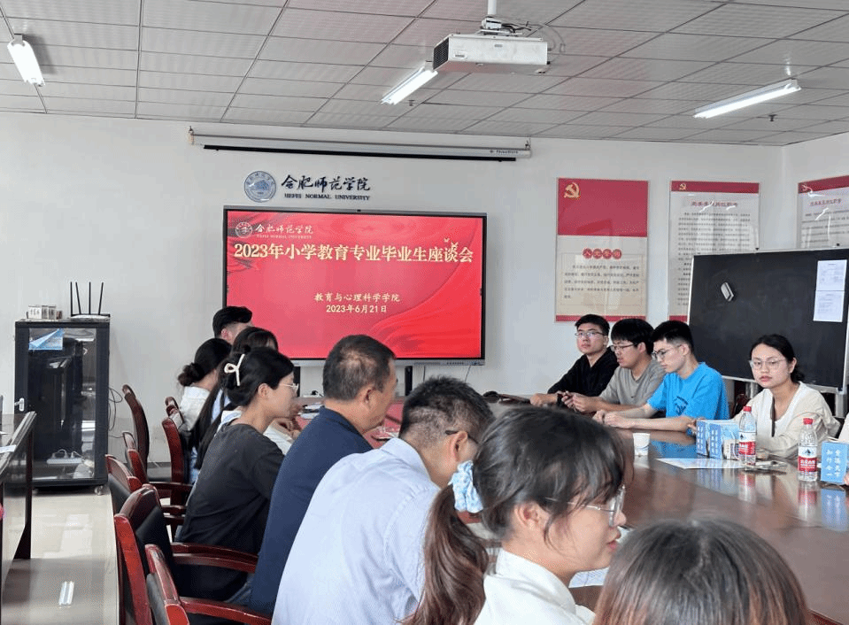 本网讯 为深入调研小学教育专业毕业生对人才培养的意见建议,6月21日下午,教育与心理科学学院在锦绣校区行知楼710会议室召开2023届小学教育专业毕业生座谈会。教育与心理科学学院副院长胡连峰和2023届小学教育专业30余位毕业生代表参加会议,教育与心理科学学院副院长闫龙主持会议。