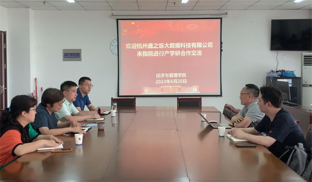 本网讯 为深化学院人才培养模式改革,提升人才培养质量,推动精准就业,6月20日下午,杭州鑫之烁大数据科技有限公司总经理易建安、秦子川老师一行2人来院开展校企合作交流。经济与管理学院党委书记陈好、副院长黄虹、钟玉文等人参加交流会。会议由黄虹主持。