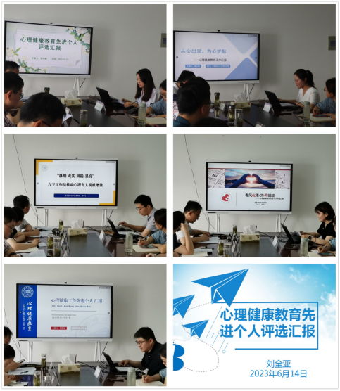 本网讯 为了进一步推进学院学生心理健康教育工作,总结经验成果,凝练工作特色,6月15日上午,学生工作处开展2023年心理健康教育先进个人评选交流会,学生工作处、宣传部、团委、教务处等部门负责人担任评委。