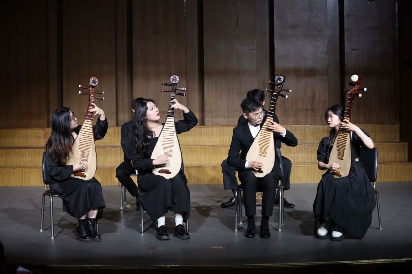本网讯 6月9日晚,音乐学院举办的“追寻——音乐学院2023届毕业生汇报音乐会”在锦绣校区音乐厅举行。学校相关单位负责人以及音乐学院全体领导、师生共同观看了音乐会。