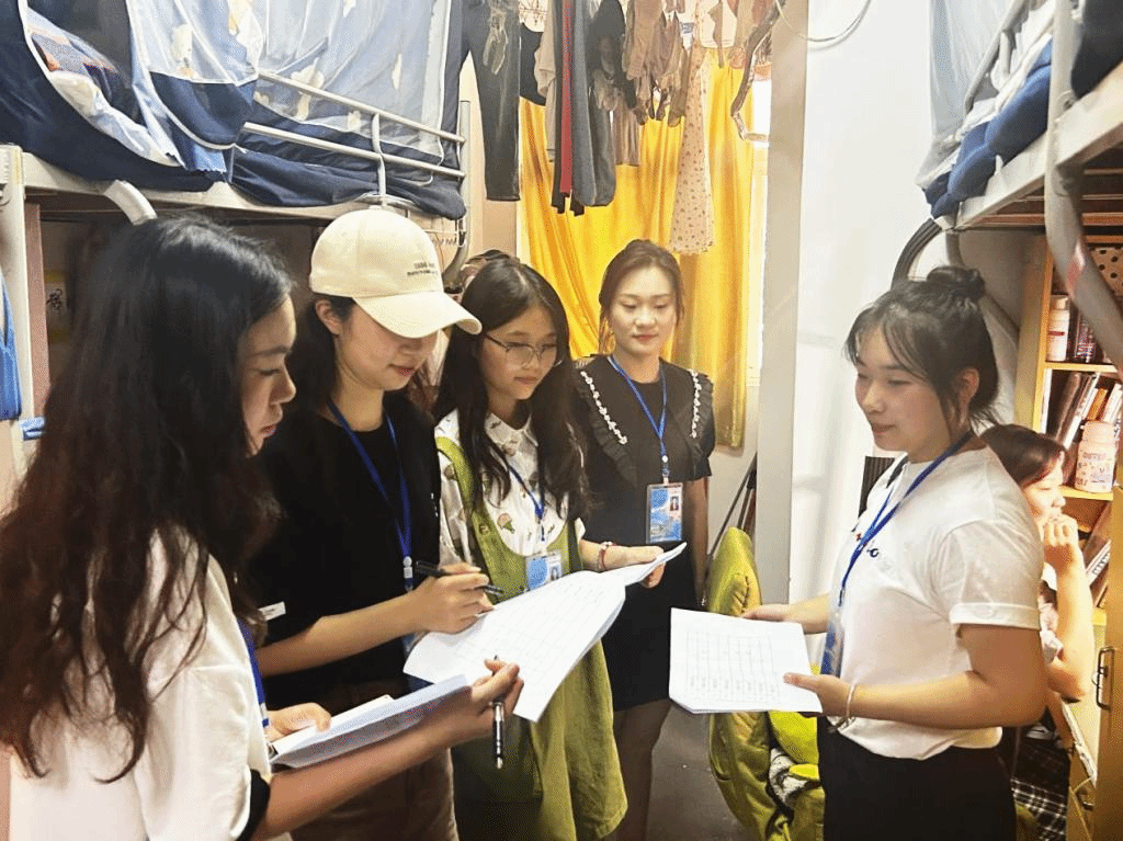 参与评审的工作人员进入各寝室进行实地检查,从风格美化设计、环境卫生、同学解说等角度出发,综合考量,现场打分。同时指出存在的不足,期望他们能在接下来的寝室生活中一步一步调整,为自己营造一个更加良好的学习生活环境。(音乐学院:王岩)