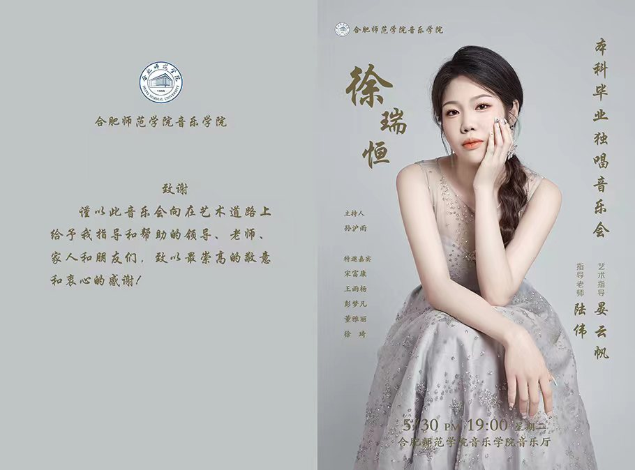 没有精美的语词来形容母校的培育,没有华美的语言来抒发对亲人朋友的感谢,唯有今夜的歌声献给大家。“台上一分钟,台下十年功”,感谢院领导的支持,感谢陆伟老师的辛勤培育,感谢一路相伴的同学。二十年风雨浪浇,雨霁云消,心事如潮;念合师数载辛劳,跪乳羔羊,还看今朝。徐瑞恒同学用四年的沉淀交出了这份完美的答卷,未来将走向更加广阔的人生。(音乐学院孙沪雨)