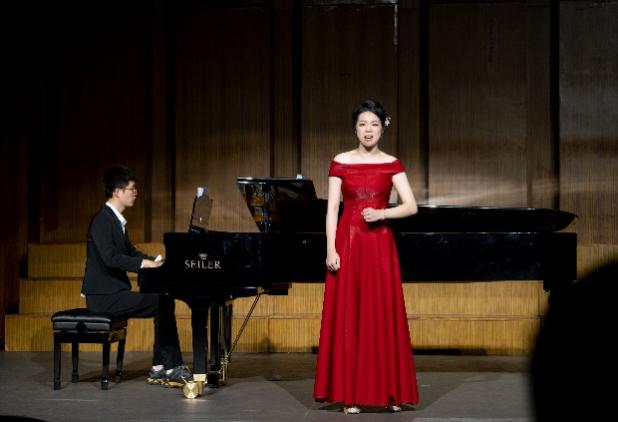 音乐会以中国歌曲为主题,所选的作品有中国古诗词艺术歌曲、近现代艺术歌曲,歌剧选段和地方民歌。音乐会第一组古诗词,在《如梦令》《青玉案元夕》《敕勒歌》中拉开序幕,紧随其后的是董雅丽同学演唱的《关雎》。既展现了古诗词的魅力,又体现了数千年来优秀中华文化和中国传统声乐艺术沉淀的结晶。人民日益美好的生活离不开祖国革命先烈的付出,源远流长的红色经典文化,是历史长河中永久的瑰宝,激励着一代又一代中华儿女的豪情和壮志。第二组红色歌曲,徐瑞恒为大家带来了独唱《三月桃花心中来》,女生二重唱《红梅赞》以及由徐瑞恒、徐琦、彭梦凡、董雅丽带来的传统民歌《龙船调》。王雨杨同学带来的歌曲独唱《来香巴拉看太阳》和宋富康同学带来陕北民歌《上一道道坡坡下一道道梁》,充分展现了二人扎实的声乐功底。第三组创作歌曲,《我的深情为你守候》《秋水长天》等歌曲描绘了对祖国的热爱之情,表达出用生命守卫和保护国家的崇高信念。音乐会在全体演员演唱的《山歌好比春江水,多谢了》中推向高潮,赢得场下老师同学们的阵阵掌声。