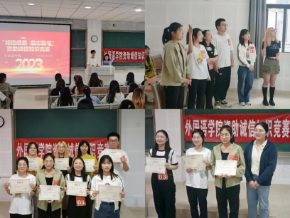 学院举办“诚信感恩,励志勤学”资助诚信知识竞赛,比赛内容涵盖资助政策、金融知识、诚信典故等多方面内容,各年级共有50余名同学参加本次知识竞赛,经过初赛线上答题和复赛现场比拼两轮环节,最终评选出8名获奖选手,颁发荣誉证书和奖品,积极引导大家争做讲诚信、立诚信、守诚信、树诚信的带头人。