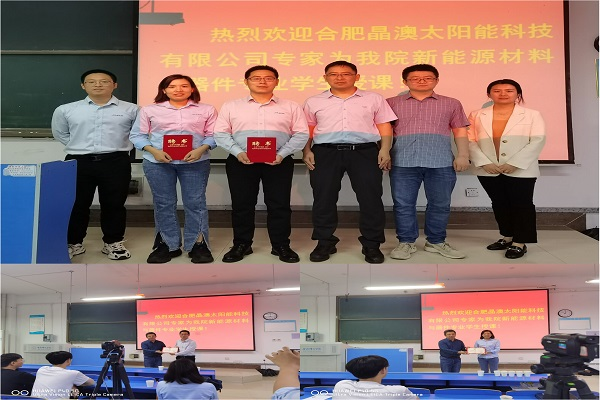 此次晶澳公司企业工程师担任企业讲师为合师学子现场教学,是物理与材料工程学院近年来深化校企合作、产教融合,打造专兼职结合的“双师双能”型教师队伍,不断创新人才培养模式的一次有益尝试。学院将进一步改进教学方式,以学生为中心,聚焦应用型人才培养,加强校企合作,在学科专业建设、人才培养方案制定等领域加强战略合作,不断提高应用型人才的培养水平,无缝对接安徽省十大新兴产业,为其高质量发展提供人才支持。(物理与材料工程学院:马小航)
