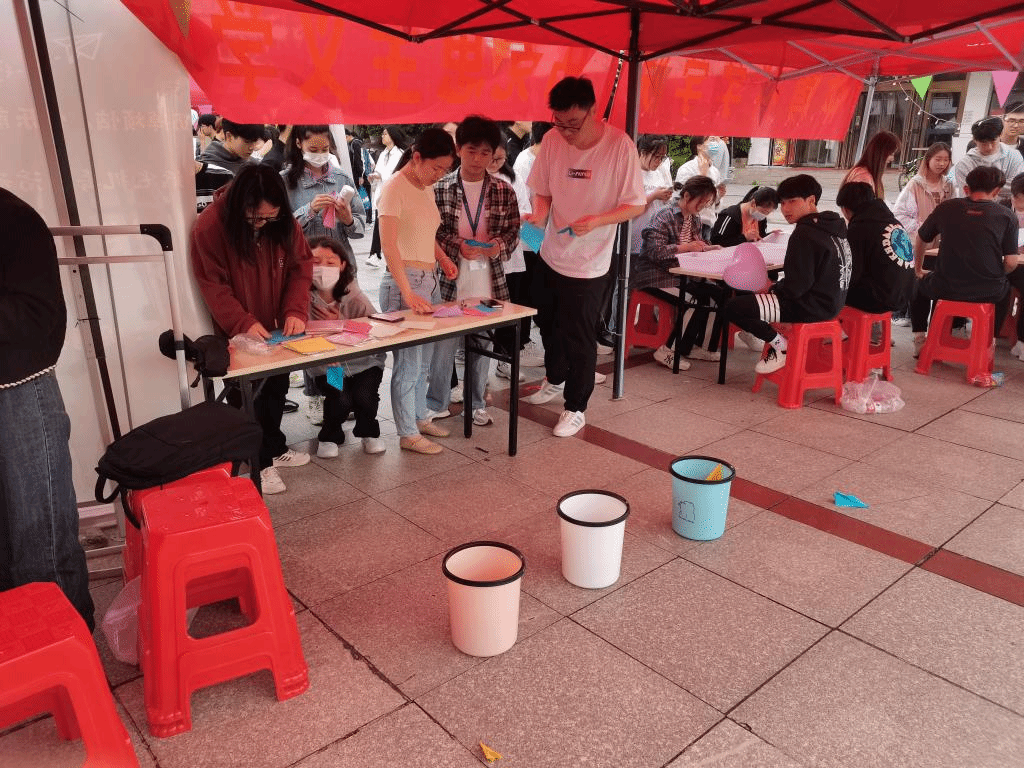 本网讯 为维护学生身心健康,缓解学习与生活中的压力和烦恼,马克思主义学院学生会于5月24日在锦绣校区生活广场,开展“扔掉烦恼,快乐前行”纸飞机丢桶特色活动,作为学院心理嘉年华活动之一。