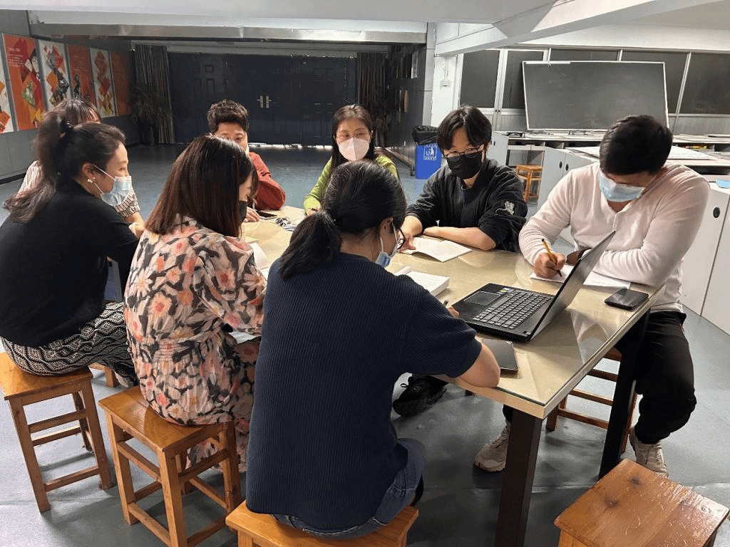 艺术设计教工党支部于5月18日在艺术楼210工作室开展集中学习与交流研讨。支部书记曹烨君主持。会上全体党员集体学习了党的二十大报告和党章、《习近平新时代中国特色社会主义思想专题摘编》部分章节,支部党员围绕“三问”交流了各自的学习心得。