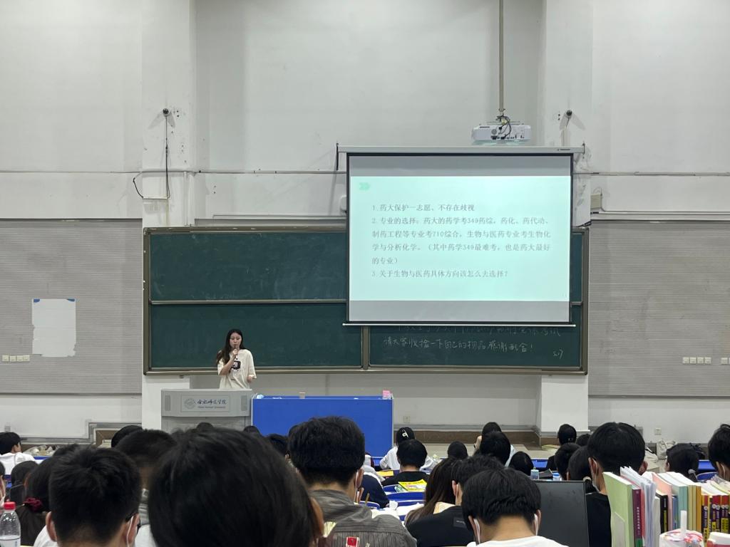 考取中国药科大学硕士研究生的郭欣悦,讲述了专业课的重要性,向同学们讲解了考研从准备到复试各个阶段的任务和重点。