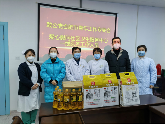 近日,我院音乐学院副教授、致公党合肥市青委会副主委陆伟,实地走访了市二院社区卫生服务中心与瑶海区长淮街道长淮社居委,为服务中心医务工作人员和社区工作人员送上大米、食用油等物品,向他们致以诚挚的问候和新春的祝福。