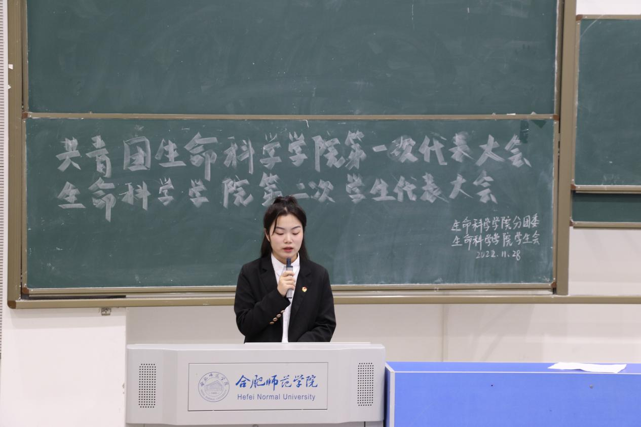大会在雄伟的国歌声中拉开了序幕。大会第一项,生命科学学院团委书记黄洁代表共青团beat365唯一官方网站生命科学学院委员会作2021-2022年度工作报告,报告全面、客观地回顾了2021-2022年度生科院团委在思想教育、自身建设、校园文化等方面的工作,总结了过去工作中取得的经验和存在的问题,提出了今后工作的目标和任务要求。